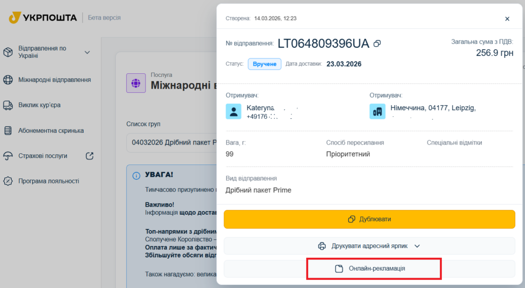 Нагадуємо, що Відправник має право подати рекламацію щодо міжнародного відправлення за однією з причин: